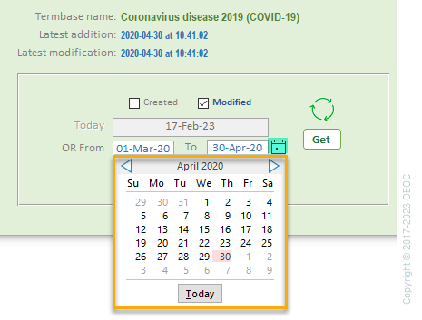 Check the corresponding box, Created or Modified, and then press the [Get] button.