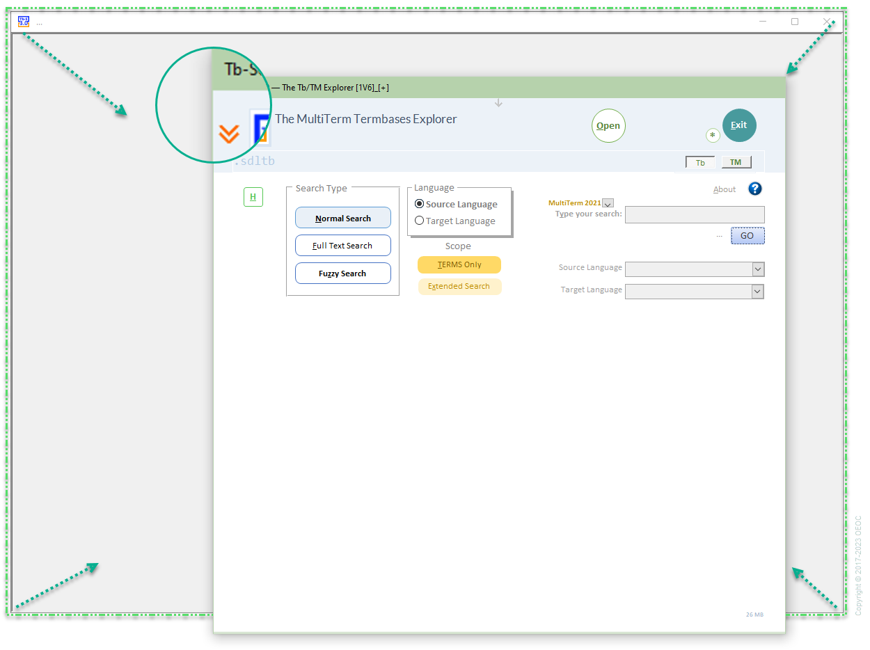 Please note that the relative position of the background window regarding Tb-Scout v3.3 window will determine the location of pop-up windows. Try and see this concept by opening, for instance, the About form.