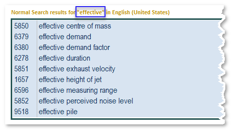 Termbases ExplorerBasic search types Normal Search Searching terms from A to Z A Normal Search is basically a left column search, that is, in a list of terms or phrases, the search results will be arranged in the order that they are stored in the Termbase, A-Z dictionary style, as shown: