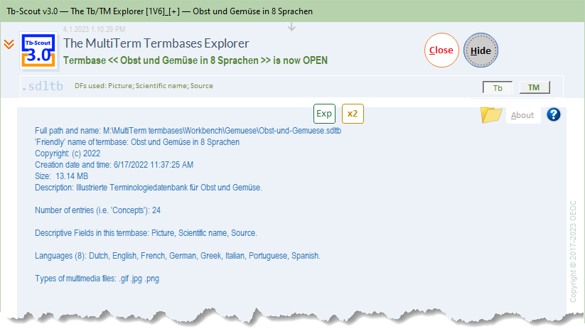 Get a Termbase brief summary readily available just by opening it